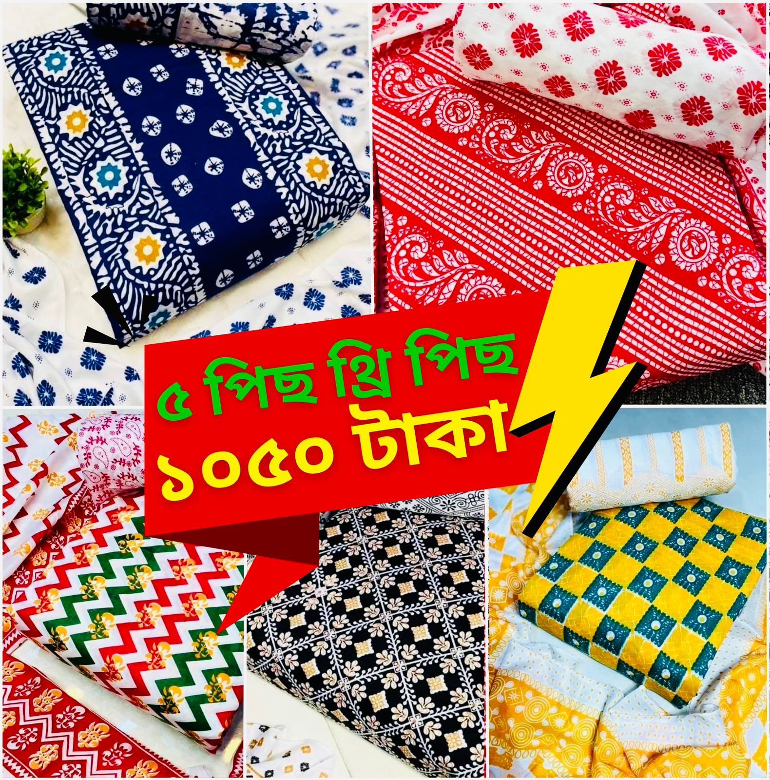 মাত্র 1200 টাকায় 5 সেট থ্রি-পিস!